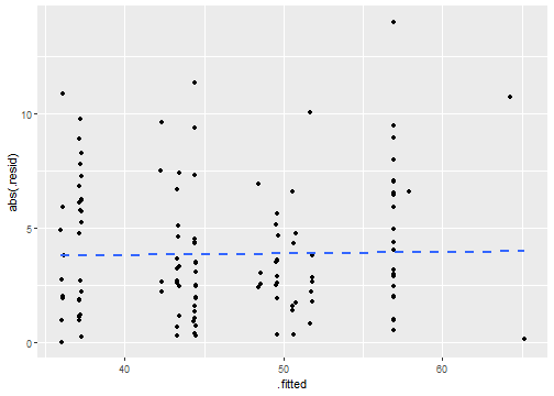 Residuals against each predictor. We are looking for any notable change in variability between groups.